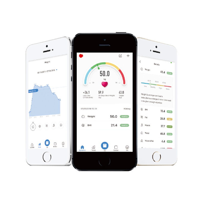 READ MORE Bluetooth konektivita TM-906B Electronic Bluetooth BMI Smart Body Weighing Scale umožňuje užívateľom pohodlne prezerať a zaznamenávať zmeny hmotnosti, index telesnej hmotnosti (BMI) a ďalšie informácie o zložení tela prostredníctvom aplikácie pre smartfóny, čo umožňuje sledovanie zdravotného stavu v reálnom čase. Toto pohodlné ovládanie umožňuje užívateľom kedykoľvek sledovať svoj zdravotný stav a následne efektívne upravovať svoje stravovacie a cvičebné plány na podporu zdravého životného štýlu.