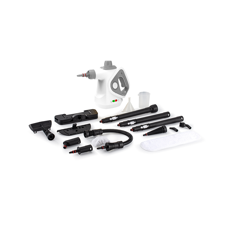 READ MORE Viacúčelový ručný parný čistič s mopom TM-377 900-1050W je univerzálne čistiace riešenie navrhnuté tak, aby zvládlo širokú škálu domácich čistiacich úloh. Tento všestranný naparovač kombinuje výkonné parné čistenie s pohodlím mopu, vďaka čomu je ideálny na čistenie podláh, okien, kuchynských povrchov a pod. TM-377 ponúka výnimočný výkon na dezinfekciu a čistenie bez potreby agresívnych chemikálií. Zahreje sa len za 1-3 minúty a poskytuje až 10 minút nepretržitej pary, čo je ideálne na hĺbkové čistenie a odstraňovanie odolných škvŕn. Pribalenú 16-dielnu súpravu príslušenstva, ktorá obsahuje základné nástroje, ako sú dlhé a zahnuté rozprašovacie trysky, okrúhla kefa, predlžovacia hadica a uterák, dopĺňa 7 príslušenstva k mopu: 3 trubice mopu, 2 konektory na prenos mopu, uterák s dlhým rukávom a spodná časť mopu, vďaka čomu je obzvlášť účinný pri čistení podláh.